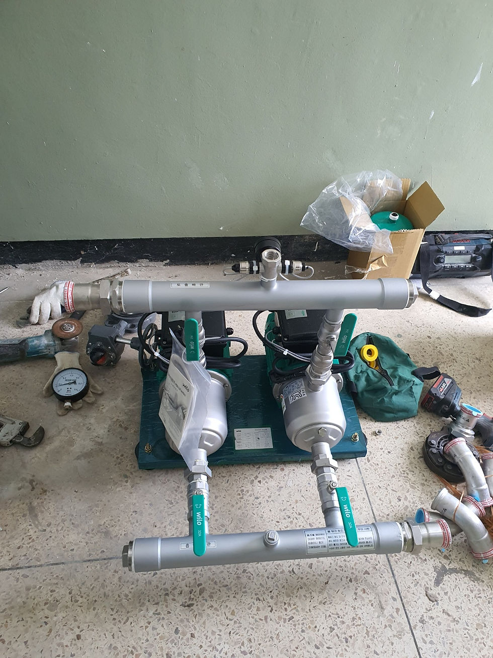 기존 노후된 부스터펌프 제거 후 새로 교체 도와드렸습니다.